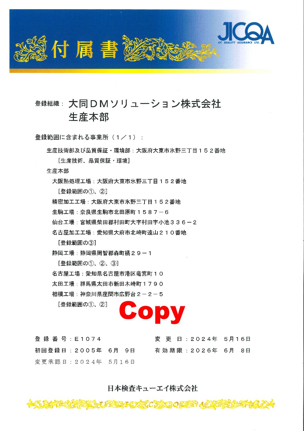 詳しくは担当営業部もしくは品質保証・環境部にお問い合わせください。