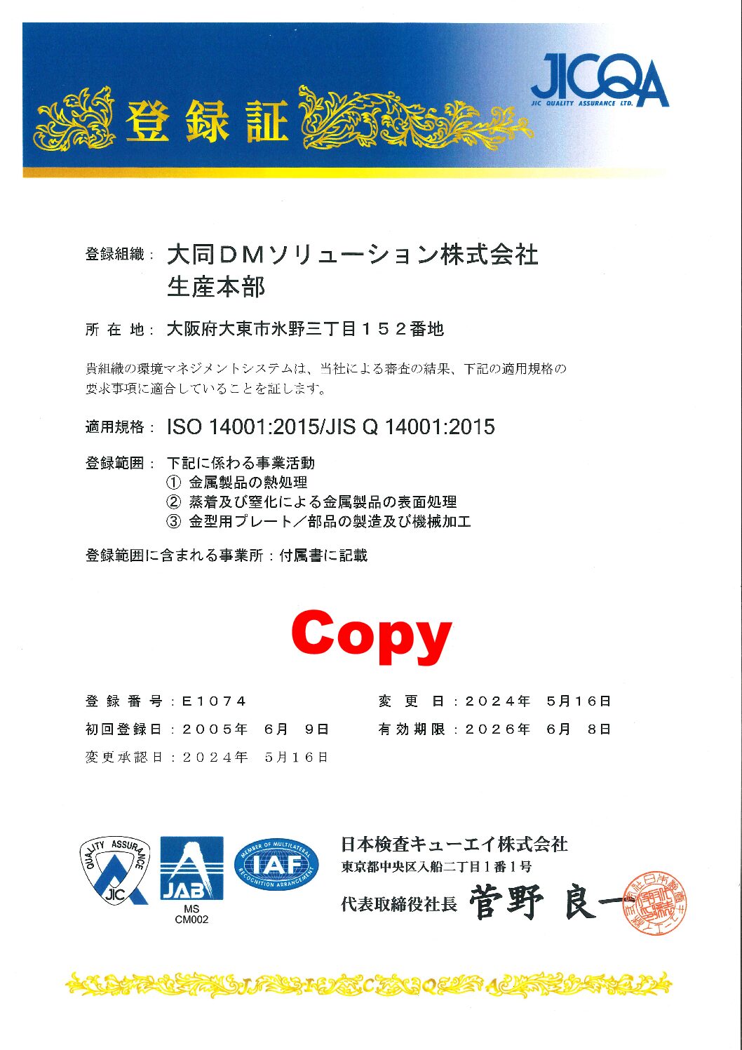 当社では、ISO14001を全工場が取得しています。