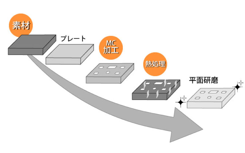 2面、4面、6面フライス、ロータリー研磨、同時加工、形状溶断加工、吊りボルト加工、追加工、熱処理、表面処理まで様々な加工ニーズにお応えします。